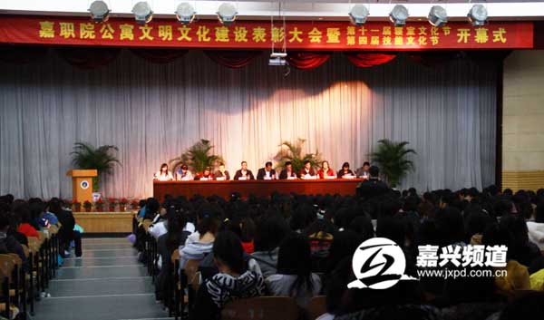 浙江在線嘉興頻道11月9日訊 今天下午,嘉興職業技術學院公寓文化節、技能文化節開幕,學院領導為公寓文明文化建設先進集體和個人頒獎。即日起至12月20日期間,“雙節”各項活動將陸續開展。