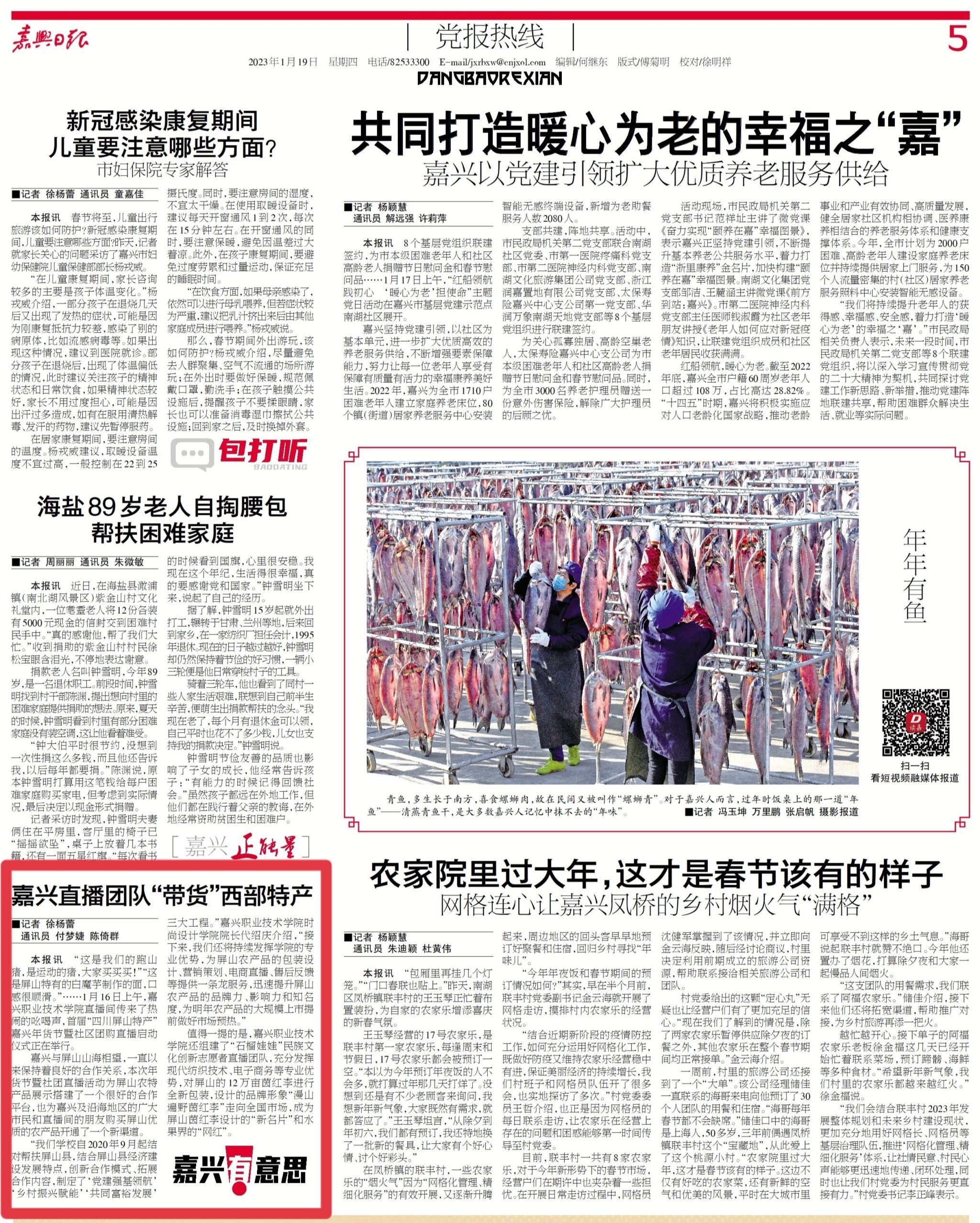 本報訊“這是我們的跑山豬,是運動的豬,大家買買買!”“這是我們屏山特有的白魔芋制作的面,口感很順滑。”“來看我們的特產大禮包!”昨天(1月16日)上午,嘉興職業技術學院直播間傳來了熱鬧的吆喝聲,首屆“四川屏山特產”嘉興年貨節暨社區團購直播啟動儀式正在舉行。