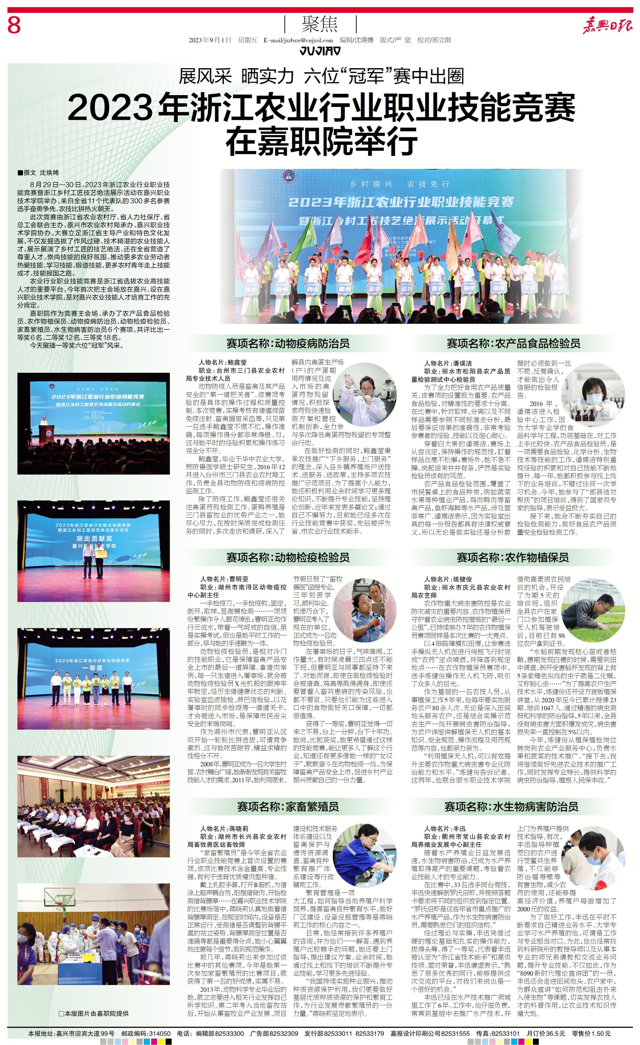 【嘉興日報】展風采 曬實力 六位“冠軍”賽中出圈 2023年浙江農業行業職業技能競賽在嘉職院舉行