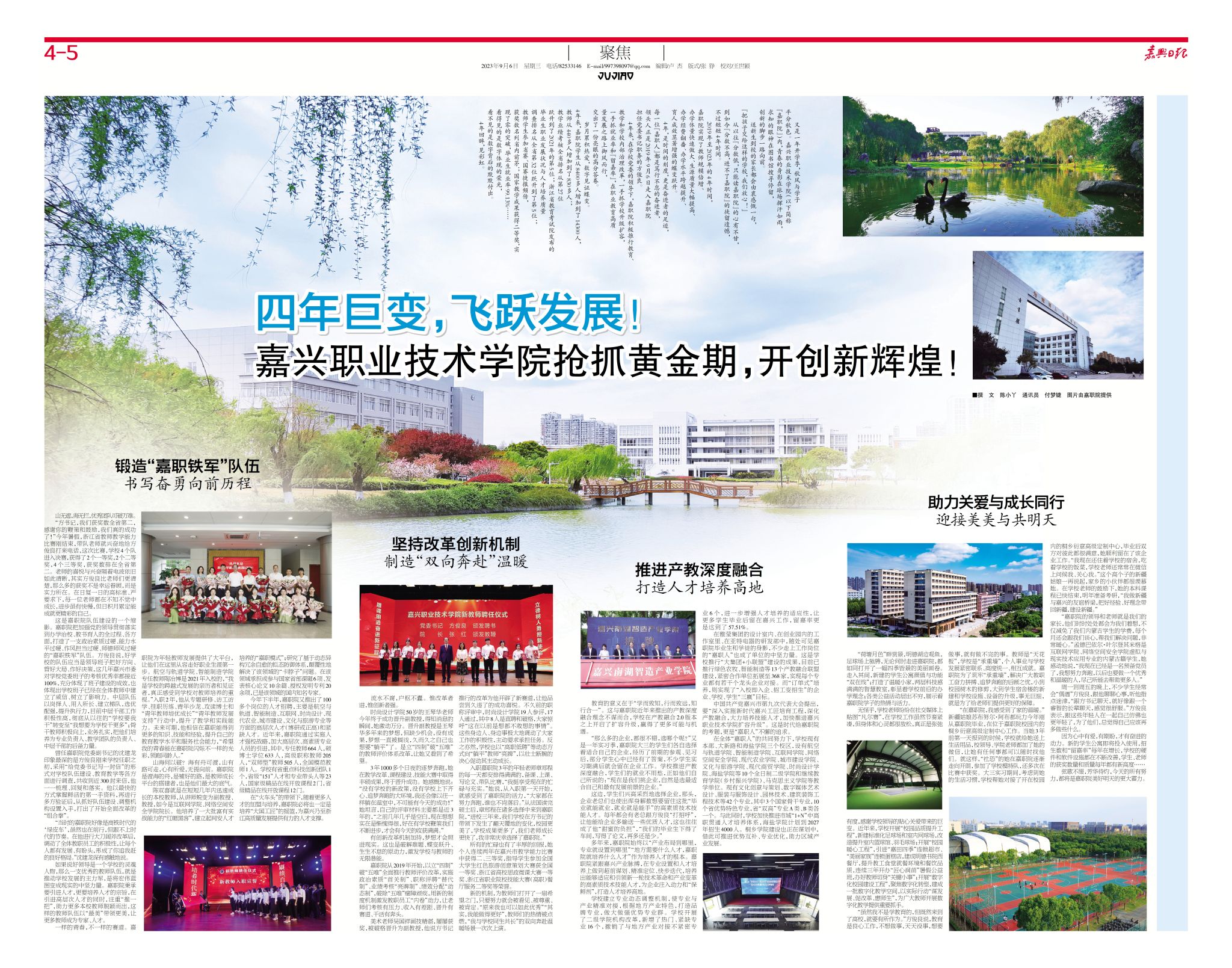 2019年至2023年的4年時間,嘉職院實現了教師規模倍增、辦學體量快速做大、生源質量大幅提高、辦學經費實現翻番、辦學水平跨越提升、育人成效顯著增強的蝶變躍升。