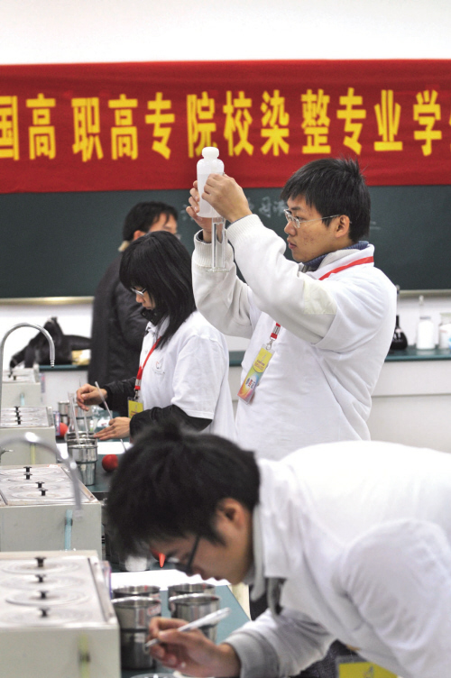 本報訊 昨天,第二屆全國高職高專院校染整專業學生技能大賽在嘉興職業技術學院舉行。此次大賽由教育部高職高專輕化類專業教學指導委員會主辦,嘉興職業技術學院承辦,來自浙江、江蘇、山東、湖北、廣東、四川等8個省份的19所高職高專院校的近百名學生參加了比賽。