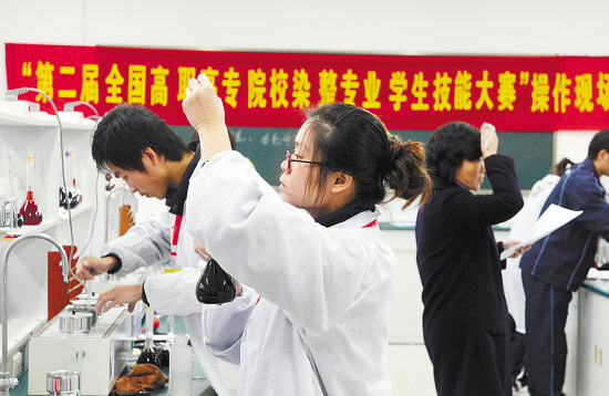 11月19日下午,第二屆全國高職院校染整專業學生技能大賽染整操作比賽在嘉興職業技術學院拉開“戰事”。在4小時內根據給定的色樣,染出符合給定小樣的染色樣,并寫出染料組成、染色工藝及配方,成了擺在全國20多所紡織印染高等職業院校100多名專業大學生面前的考題。