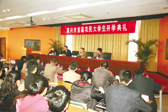 3月16日,嘉興市首屆“農(nóng)民大學(xué)生”學(xué)歷教育班開學(xué)典禮在嘉興職業(yè)技術(shù)學(xué)院隆重舉行,拉開了嘉興市“農(nóng)民大學(xué)生”培養(yǎng)工程的大幕。開展“農(nóng)民大學(xué)生”學(xué)歷教育是嘉興市為了培養(yǎng)造就一支高素質(zhì)、懂技術(shù)、善經(jīng)營(yíng)、會(huì)管理、門類齊全的農(nóng)村人才隊(duì)伍,為農(nóng)村培養(yǎng)一批“留得住、用得上、干得好”的技術(shù)和管理人才,推進(jìn)新農(nóng)村建設(shè)而施行的一項(xiàng)實(shí)實(shí)在在的舉措。