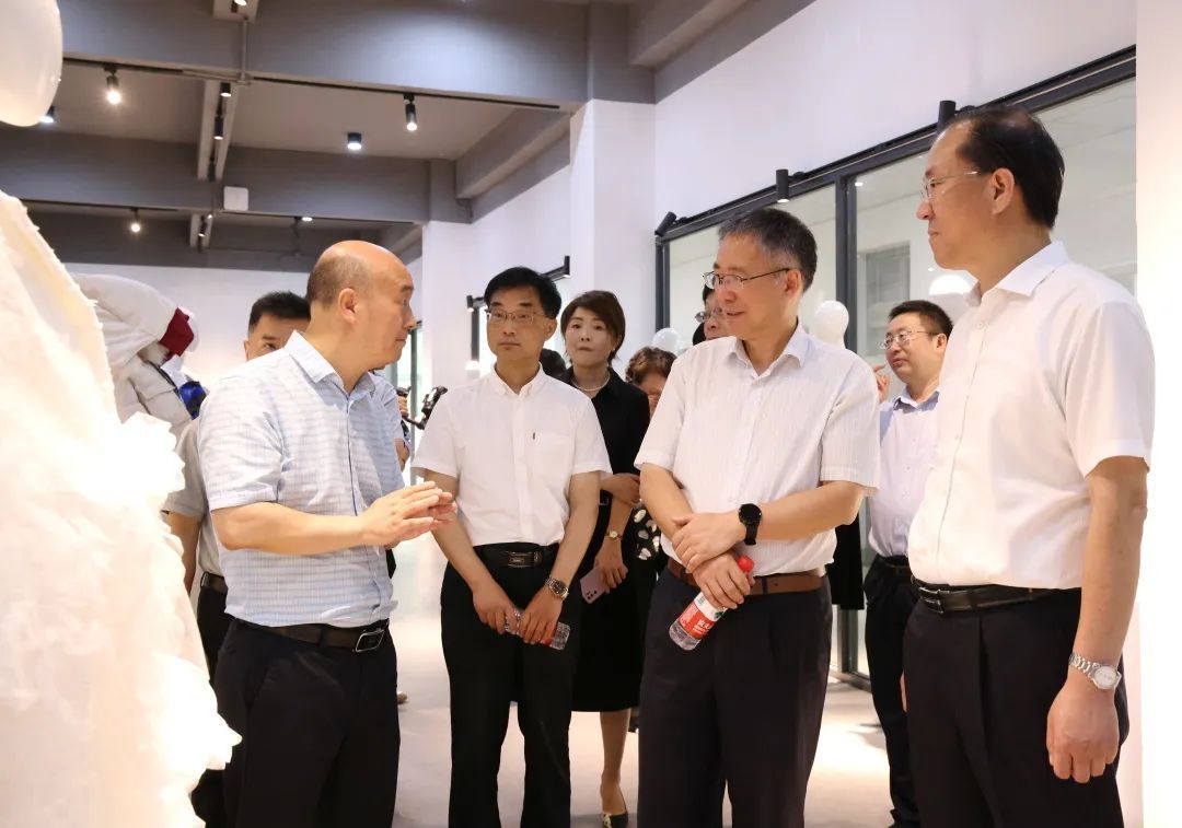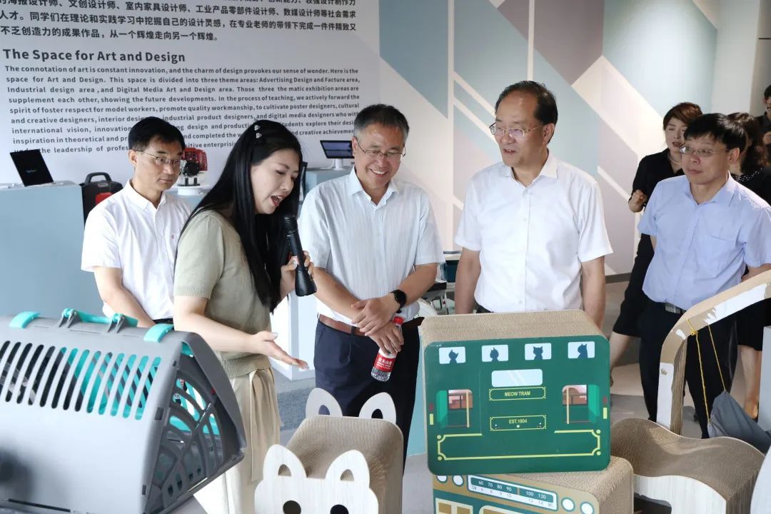 參觀時尚設(shè)計學(xué)院展廳,深入了解產(chǎn)教融合校企合作情況、學(xué)生就業(yè)方向及薪酬待遇、學(xué)校東西幫扶成果等,夸贊嘉職院專業(yè)設(shè)置與時俱進、緊貼產(chǎn)業(yè)需求。欣賞師生親手設(shè)計的藝術(shù)作品,充分肯定了師生卓越的創(chuàng)新創(chuàng)造能力。