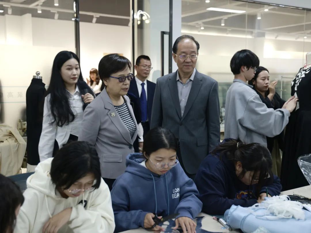 魯昕實地考察時尚設計學院數字面料圖書館、藝術設計展示廳、服裝展示廳、衍意高級服裝定制中心,深入了解校企合作、學生實習就業、師生競賽獲獎情況等,欣賞由師生原創設計的系列服裝、畫作、文創作品和嘉興職業技術學院—意大利時尚學院學生時裝作品全球發布視頻,充分肯定了師生卓越的創新創造能力。