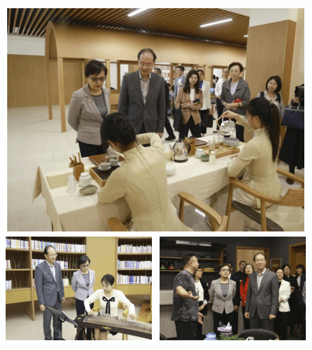 來到教師發展中心,觀看辦學特色展示墻,參觀健身中心、形體舞蹈房、瑜伽房等,欣賞茶藝表演、健身健美展示,與師生親切交流。