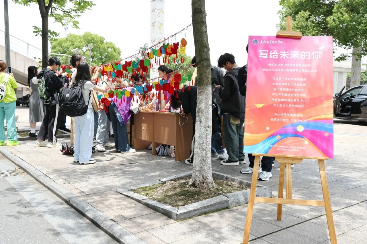 畢業(yè)之際,同學(xué)們掛上許愿牌,寫(xiě)上對(duì)自己、親友、學(xué)校的美好祝福,和老師、朋友們合影留念,定格美好瞬間,記錄美好時(shí)刻,建立和延續(xù)嘉職人共同的情感紐帶。