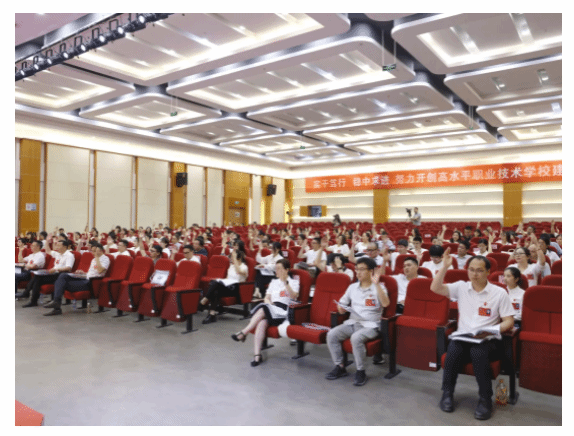 張紅在學校工作報告中全面總結回顧了過去一年的工作成績,并對本年度工作作了總體部署。她強調,必須以黨的領導為根本,進一步落實立德樹人任務;以重點任務為核心,進一步增強關鍵辦學能力;以產教融合為重點,進一步提高人才培養質量;以科教融匯為導向,進一步服務區域社會發展;以人才強校為目標,進一步建強教師隊伍力量;以擴大開放為抓手,進一步提升國際辦學水平;以數字賦能為支撐,進一步夯實內涵發展之基,以鼓足奮力一搏的干勁、強化工作落實的韌勁,推動學校高質量內涵式發展,為加快培育新質生產力、建設現代化產業體系夯實人才支撐。
