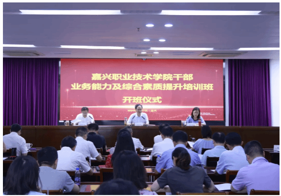 7月17日-7月21日,嘉職院舉行干部業務能力及綜合素質提升培訓班。黨委書記朱學軍出席開班儀式并作動員講話,院長張紅出席,黨委副書記張紅宇主持開班儀式,全體中層及以上干部參加。
