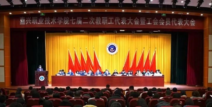 2月21日,嘉職院隆重舉行第七屆二次教職工代表大會暨工會會員代表大會(以下簡稱“雙代會”),黨委書記朱學軍出席并講話,院長張紅作題為《向“新”而進 向“高”而攀 奮力譜寫內涵式高質量發展新篇章》的工作報告,全體代表參加會議。