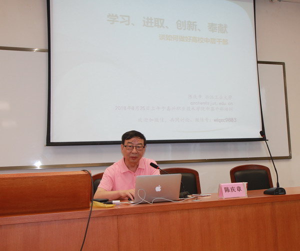 隨后接下來的兩天半時間內,暑期讀書會給中層干部們安排了五大專題學習,分別是:浙江工業大學陳慶章教授的“學習,進取,創新,奉獻——談如何做好高校中層干部”、浙江省委黨校邱巍教授的“加強政治建設,清廉浙江解讀——省委十四屆三次全會精神學習”、嘉興市委黨校輿情研究中心主任洪和根的“‘八八戰略’與習近平新時代中國特色社會主義思想”、常州工程職業技術學院副院長洪霄的“內部質量監控與信息化管理”、江蘇科技大學南徐學院杜蘇教授的“高校中層干部的領導力與執行力”。期間,學院領導干部在聽取部門處室匯報交流的基礎上,組織學校中層干部對三年行動計劃進行了集中交流與分組討論。