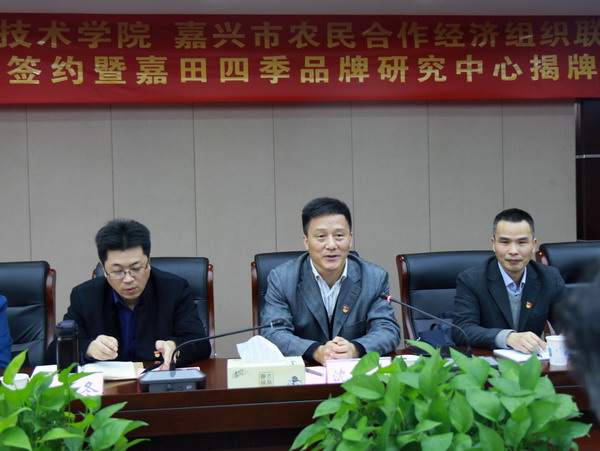 3月14日上午,我校與嘉興市農民合作經濟組織聯合會(以下簡稱“農合聯”)合作簽約,雙方籌備成立的嘉田四季品牌研究中心揭牌。此舉標志著我校與市農合聯正式進行聯姻,也標志著嘉田四季品牌研究中心的研究工作正式開始。我校專業教師與研究人員將以嘉田四季品牌運營和發展為平臺,為服務“三農”和鄉村振興戰略貢獻自己的智慧和力量。