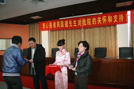3月9日下午,我院2009年順昌幫困助學基金正式發(fā)放,院長盛健出席發(fā)放儀式并作重要講話。儀式由院黨委委員、副院長都建明主持,周國建先生偕夫人成蘊女士親臨會場,嘉欣絲綢股份有限公司工會主席、人事部經理金解潮先生、各分院教師、學生代表以及受助學生等參加。