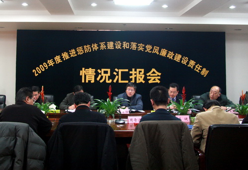 學院黨委書記周奇跡從“以‘合力紀檢’為內(nèi)核,落實黨風廉政建設(shè)責任制”,“以‘務(wù)實紀檢’為突破,開展反腐倡廉宣傳教育”,“以‘人文紀檢’為支撐,推進廉政文化進校園”,“以‘主動紀檢’為重點,加強對學院各級干部權(quán)力行使的監(jiān)督”,“以‘形象紀檢’為導向,深入開展作風效能建設(shè)”,“以‘鐵腕紀檢’為保障,切實維護黨紀政紀嚴肅性”等幾個方面,就學院2009年度全面貫徹和落實黨風廉政建設(shè)責任制,不斷拓展防治腐敗工作領(lǐng)域,不斷完善懲治和預防腐敗體系,不斷創(chuàng)新紀檢監(jiān)察工作新模式,著力構(gòu)建“合力紀檢、務(wù)實紀檢、人文紀檢、主動紀檢、形象紀檢、鐵腕紀檢,打造陽光校園”(六檢一校)新格局的具體工作情況向市領(lǐng)導作了詳細匯報。