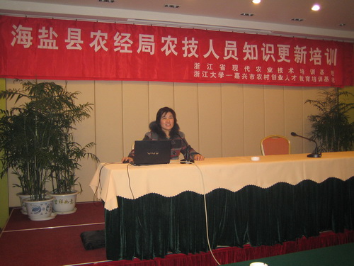 為了切實提高培訓效果,增強農技人員為農服務本領,海鹽縣農經(jīng)局多次與我院繼續(xù)教育分院探討研究培訓大綱、培訓模塊和培訓內容,制訂了《基層農技人員培訓實施方案》,編制了培訓材料。我院李玉清教授、萬泰認證研究員盧振輝及農業(yè)部農產(chǎn)品檢測中心教授吳莉宇分別在此次培訓中對《高效生態(tài)農業(yè)與循環(huán)經(jīng)濟》、《良好農業(yè)規(guī)范標準與實施》、《農產(chǎn)品質量安全與管理》等內容做了詳細講解。