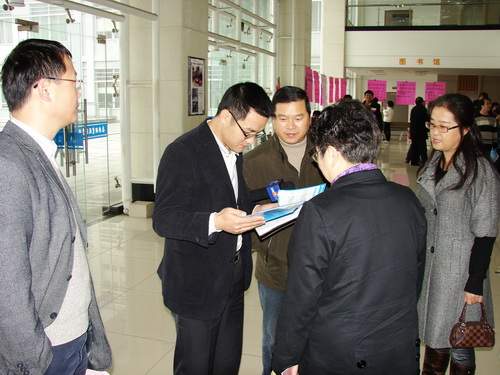 11月28日上午,信息與管理分院在圖文信息中心,成功舉辦2010屆畢業生就業招聘會。前來參加本場招聘會的企業有96家,他們大部分來自嘉興地區的信息技術、生產制造及服務行業的企業。招聘的崗位有網站建設、網絡技術、電子商務、平面設計、網站美工、計算機維護、物流管理、營銷、會計、文秘等,完全覆蓋了信管分院現有的9個專業,提供的職位數有740多個。學院黨委書記周奇跡、副院長周建新、紀委書記章康龍等領導親臨現場給予指導,對辦好本場招聘會做出了具體的指示。本場招聘會還得到了嘉興電子商務協會的大力支持,秘書長魏建華女士親臨現場指導,并引進14家會員單位共同出席。嘉興電視臺等媒體應邀對招聘會給予了現場采訪和報道,對促進專業學生就業、提高學院的知名度起到了積極的作用。
