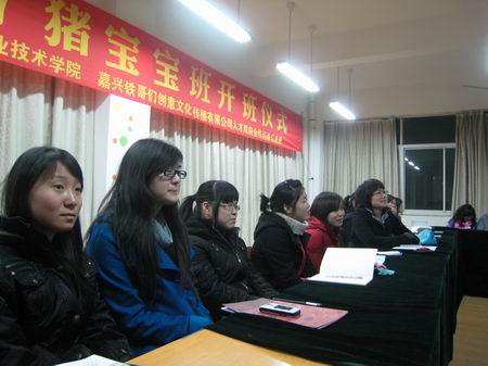 據了解,本學期伊始我院紡織與藝術設計分院就與嘉興鐵哥們創意文化傳播有限公司積極進行協商,籌劃組建校企合作人才培養訂單班“創意設計07豬寶寶班”。經過雙方努力,10月至11月,按照“雙向選擇、擇優錄取”的原則,組織宣傳發動我院07級工業設計、動漫和服裝設計等專業學生自愿報名參加。后經雙方共同選拔,共有20位同學被“創意設計07豬寶寶班”錄取。