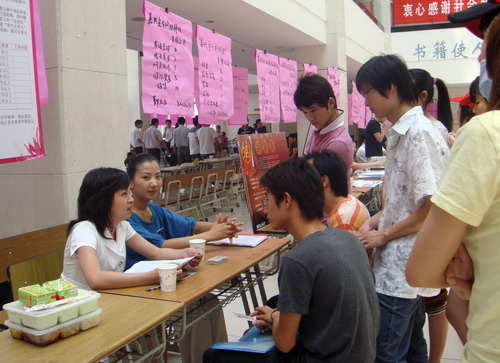 6月6日上午,學院圖文信息中心大廳,熙熙攘攘擠滿了06級的畢業生。據悉,這是我院首次舉行的一場夏季畢業生綜合招聘會。為積極應對全球金融危機給今年畢業生就業工作帶來的嚴峻挑戰,更好地方便用人單位和畢業生進行“雙向選擇”,促進09屆畢業生順利就業,學院與嘉興市人才交流服務中心聯合舉辦了此次招聘會。