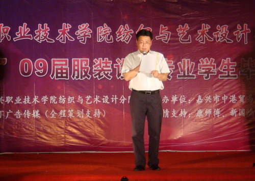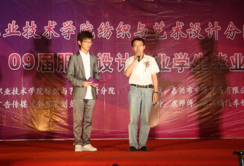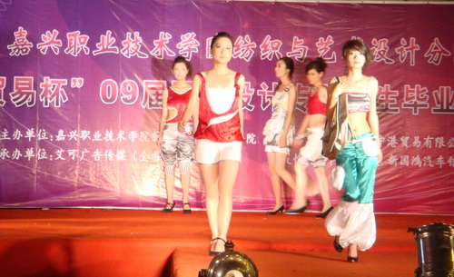 6月12號晚,華庭街百聯服飾城廣場燈火通明,人頭攢動。“嘉興職業技術學院紡織與藝術設計分院‘中港貿易杯’09屆服裝設計專業學生畢業作品展示”正在這里隆重舉行。出席本次晚會的有市教育局高教處處長許志,院領導都建明,分院領導藍烈煌、陸金英等,擔任評委的有設計師于春燕、高級技師范曉春及我院的有關專業教師。在場的數百名熱情的觀眾,享受了這場別開生面的時裝盛宴。經過激烈比拼,最后,“Iron”系列以91.2分的最高分摘得桂冠。