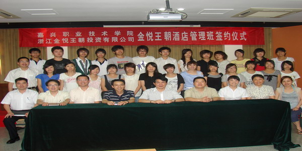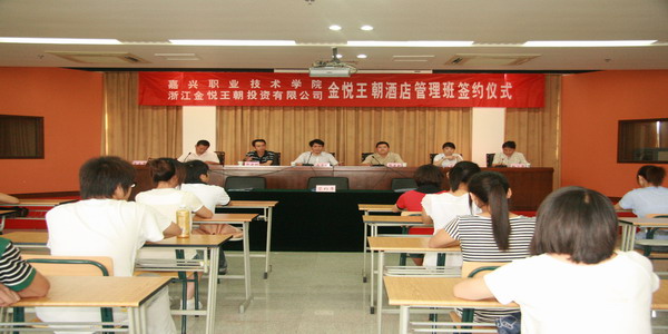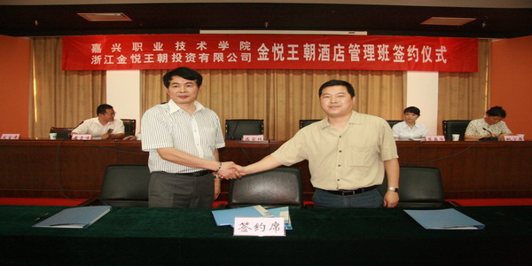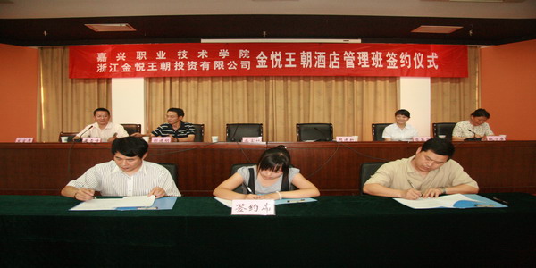 6月18日下午,學(xué)院與浙江金悅王朝投資有限公司在1號(hào)樓506室隆重舉行“金悅王朝酒店管理班” 簽約儀式。院黨委副書記、副院長(zhǎng)周建新,黨委委員、副院長(zhǎng)都建明,金悅王朝集團(tuán)總裁盛富林、金悅?cè)耸沦Y源中心總監(jiān)蔡荔華,以及院科技與產(chǎn)學(xué)合作處、外語與貿(mào)易分院相關(guān)領(lǐng)導(dǎo)等出席了簽約儀式。簽約儀式由科技與產(chǎn)學(xué)合作處處長(zhǎng)黃雪峰主持。