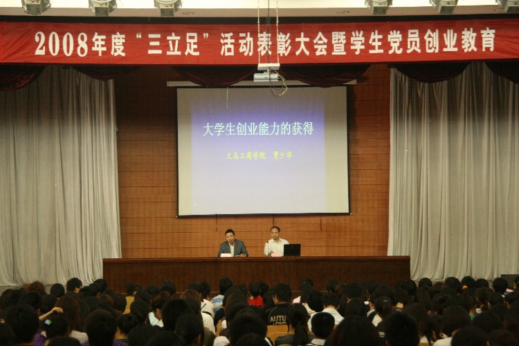 4月15日下午,學院2008年度“三立足”活動表彰暨學生黨員創業教育大會在2號樓報告廳隆重舉行。院黨委委員、紀委書記章康龍,宣傳部及各分院相關領導出席大會。全體學生輔導員、班主任,學生黨員、發展對象、入黨積極分子共800多人參加會議。