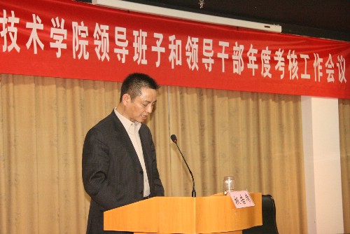 市委組織部干部二處張正明處長作了考核工作說明,隨后,周奇跡書記首先代表學院黨政領導班子作了述職述廉報告,他還結合2008年工作開展情況,總結了取得的成績及在工作中存在的一些問題,作了詳實客觀地個人述職述廉報告。