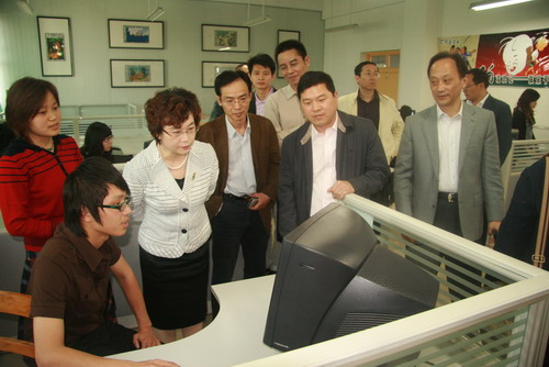 楊立平部長一行在學院領導的陪同下,實地考察了逸夫樓實訓中心、二期工程建設工地、學生公寓、圖書館及整個校園建設情況。考察調研中,楊部長對我院學生實訓基地建設、公寓文化氛圍、圖書館學生滿意窗口創建活動給予了充分肯定。