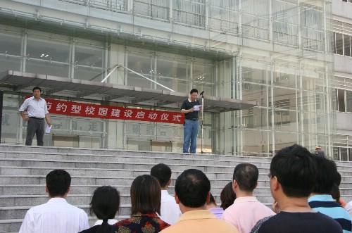 章康龍書記在啟動儀式上發(fā)表了講話。他指出,節(jié)約是一種品德,一種精神,一種發(fā)展。堅持不懈地做好節(jié)約,不僅展示了一個人認真做事的態(tài)度,而且孕育著高尚的思想道德素質(zhì)。我院目前正處在發(fā)展的關(guān)鍵時期,示范建設(shè)、二期建設(shè)兩件大事并舉,為此要從多方面厲行節(jié)約:首先,要在基建和大宗物質(zhì)采購上厲行節(jié)約;其次要節(jié)約辦公;第三要節(jié)約用水和用電,同時要做好對節(jié)約型校園的宣傳和教育工作。
