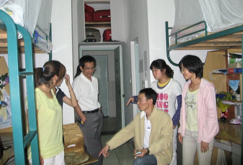 都建明副院長平時經(jīng)常對聯(lián)系學(xué)生進(jìn)行不定期走訪,了解關(guān)心學(xué)生的思想狀況以及學(xué)習(xí)生活情況,幫助他們解決生活等方面的困難,與黨員聯(lián)系寢室的同學(xué)建立了深厚情誼。5月25日中午,都院長在學(xué)工部魯中海副部長、公寓思政教育中心姚蘭英和學(xué)生輔導(dǎo)員的陪同下,來到7號公寓開展“黨員干部聯(lián)系寢室”活動,看望了111寢室的幾位同學(xué)。都院長親切地詢問了同學(xué)們的學(xué)習(xí)、生活情況,宛如關(guān)心自己的孩子一樣。在端午節(jié)來臨之際,都院長特別關(guān)心詢問了幾個學(xué)生是否回家過端午的情況,當(dāng)?shù)弥獛讉€同學(xué)都不回去過節(jié)時,都院長當(dāng)即許諾端午那天將給她們送來她們各自最喜歡吃的粽子,幾個同學(xué)聽后高興不已,隨即表達(dá)了對“家長”的感謝。最后,都院長還給同學(xué)們提出了要刻苦學(xué)習(xí),努力爭取優(yōu)異成績,注意安全與健康等希望與要求。親切的交談使同學(xué)們倍受鼓舞,同學(xué)們表示將努力學(xué)習(xí),不斷提高綜合素養(yǎng)。
