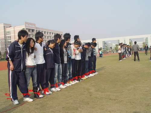 今年的培訓課程形式新穎,內容豐富。第一堂動員及中心理論課程在3月23日晚6:30正式開始,由院團委書記魯中海老師擔任主講,魯書記用親切、自然地聊天方式就學院開展此次干部培訓課程的重要性、必要性予以強調并從學生干部自身素質方面提出了希望及要求,課程中還學習了科學實踐發展觀,在2個小時的課程中不時從報告廳傳出同學們的陣陣掌聲。在實踐課程中安排了三大塊體現團隊協作性的文體活動,3月24日下午3:20在足球場上進行的第一項是“團結協作跳長繩”,每支隊伍5男5女共跳一根長繩;第二個項目是“齊心協力綁腿走”,每支隊伍7女8男,分別將腿綁上15人共同走向終點。參賽選手們個個摩拳擦掌,其他的學生干部加油吶喊,整個操場充滿著團結協作的精神。3月24日晚6:30分在報告廳進行的是“共唱和諧之音合唱”活動,6支隊伍的團學干部全部參與,嘹亮的歌聲和蓬勃的生機彌漫了整個報告廳,一片團結和諧的氣氛。活動結束后每支隊伍分別被授予單項獎并且進行了一個別開生面的頒獎儀式,頒獎嘉賓全部是來自各支隊伍的代表,頒獎獎品分別是每支隊伍的干部們自己手工創意制作的象征著友誼的紀念品。活動結束后,院團委書記魯中海老師對此次活動進行了總結。
