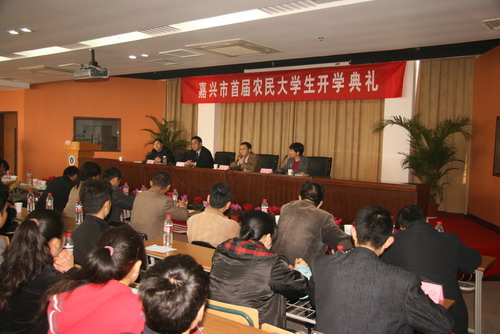 2009年3月16日上午,學院1號樓506會議室里,不時傳出一陣陣熱烈的掌聲——嘉興市首屆“農民大學生”學歷教育班開學典禮在這里隆重舉行。市政府副秘書長葛永元,學院黨委書記周奇跡,黨委副書記、副院長周建新等出席開學典禮。嘉興五縣兩區農經部門相關負責人及來自各地的92名學員一起參加了開學典禮。開學典禮由市農經局副局長趙如英主持。