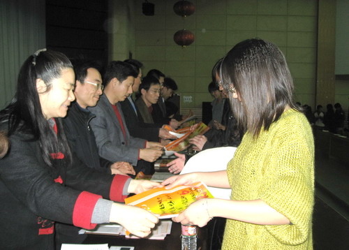 會議首先由學生處副處長王敏堅老師宣讀表彰文件,對在2008學年第一學期公寓文明文化建設中作出重要貢獻、取得優異成績的先進集體和個人進行了表彰。