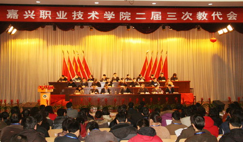 市教育工會主席趙阿發向大會致賀詞,對大會的召開表示熱烈祝賀。他說,教職工是學院的主人,是辦學的主體,通過教代會讓廣大教職工充分行使知情權、參與權、監督權,對推進學院民主、科學、和諧發展具有重要意義。他希望通過此次教代會的召開,廣大教職工圍繞目標、群策群力、團結進取,為全面實施學院中長期發展計劃、加快省級示范性高職院校建設,為實現嘉興市經濟社會又好又快發展做出應有的貢獻。