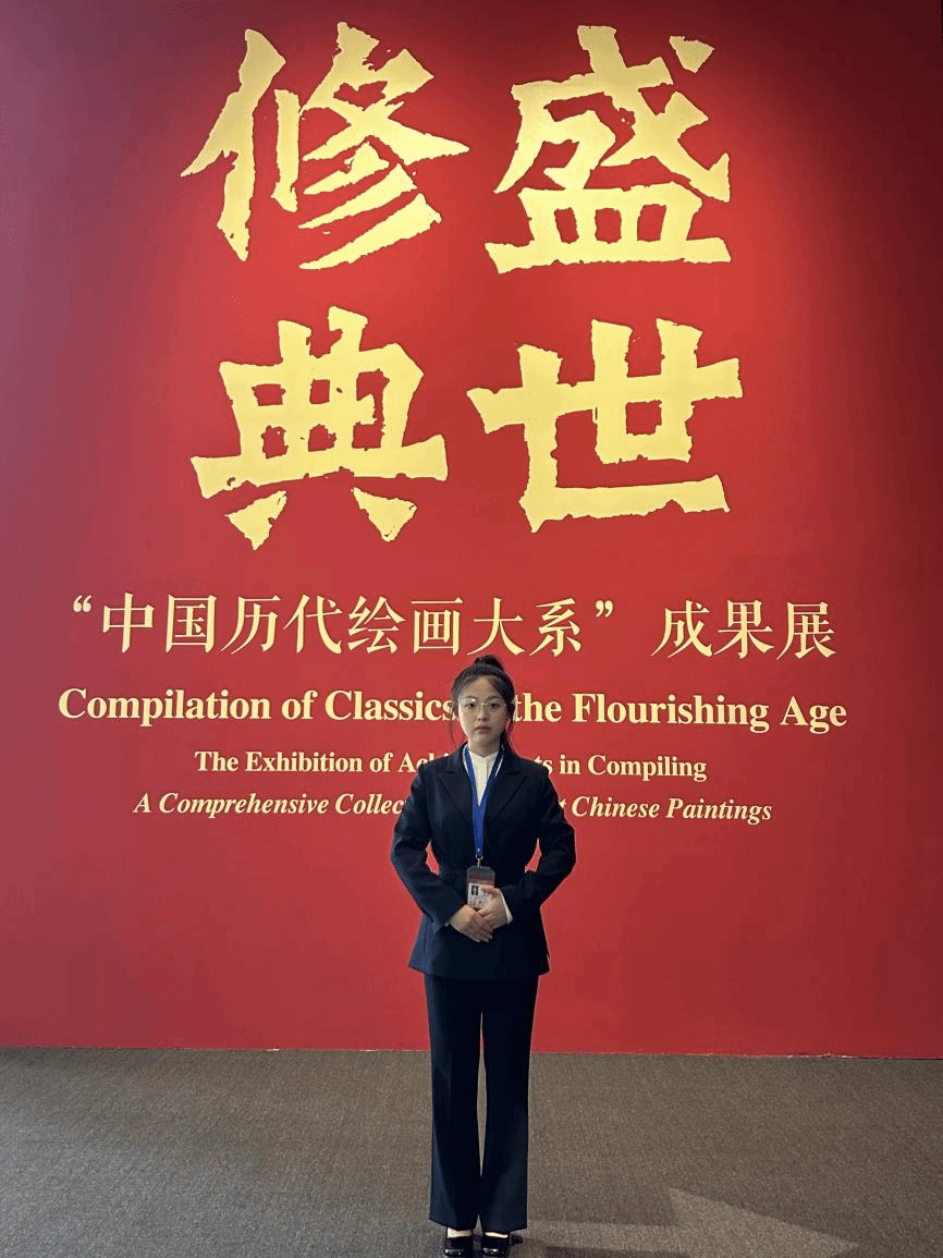 遲日江山麗,春風花草香。暖春三月,前來中國國家博物館參觀的游客絡繹不絕,在館內的“盛世修典——‘中國歷代繪畫大系’成果展”現場,有位朝氣蓬勃的年輕女生,身穿正裝,落落大方地領著游客觀展。她就是擔任本次成果展志愿者講解員的嘉職院學生葉舒琪。