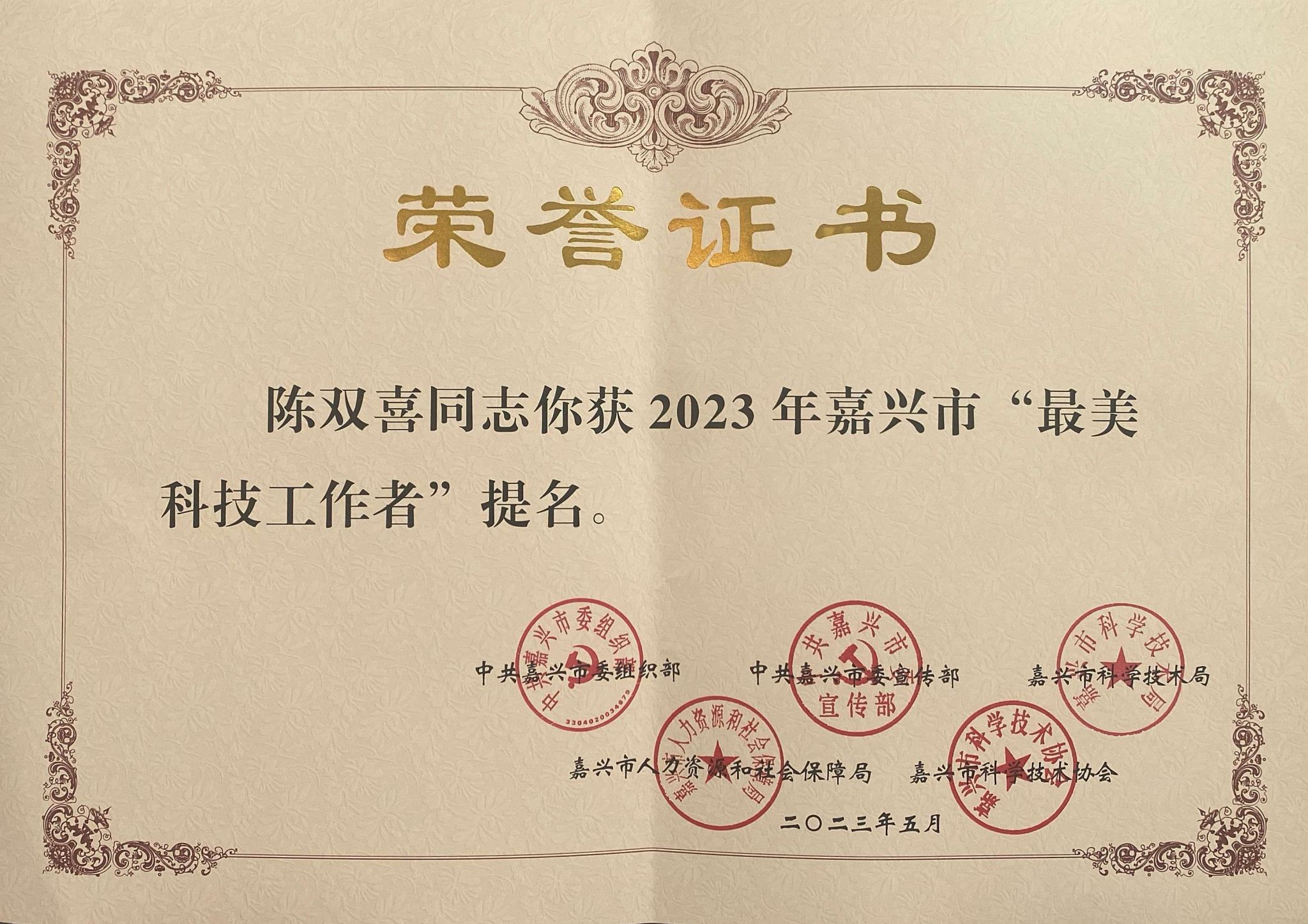 近日,2023年嘉興市“最美科技工作者”評選結果出爐,嘉職院互聯網學院、網絡空間安全學院院長、教授陳雙喜博士榮獲“最美科技工作者”提名。
