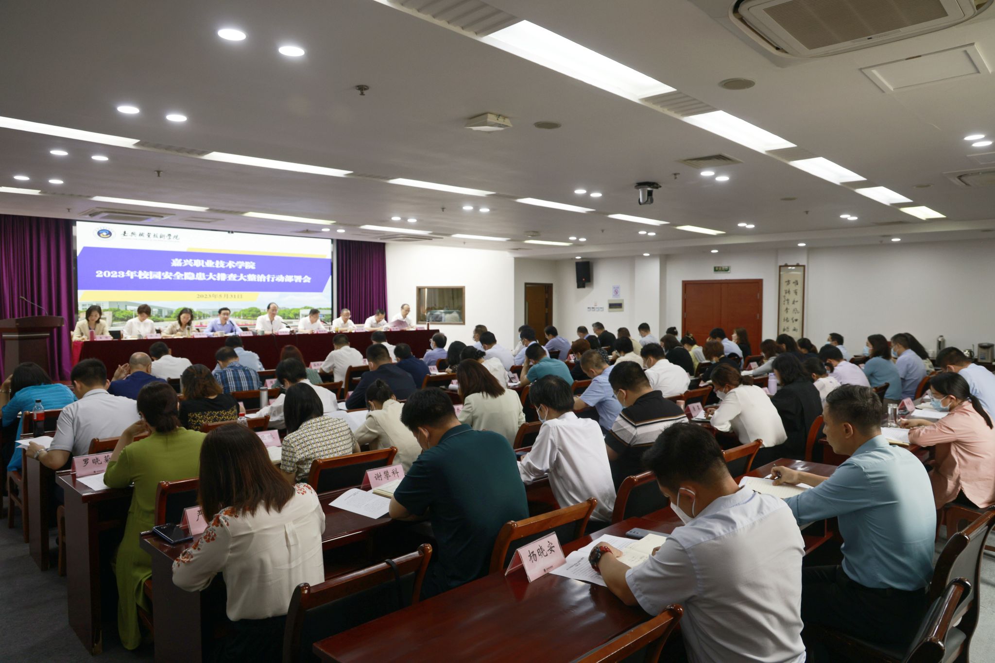 5月31日,嘉職院召開校園安全隱患大排查大整治行動部署會,深入貫徹落實習近平總書記關于安全工作的重要指示批示精神、省委省政府有關安全生產工作的決策部署,全面落實省教育廳有關會議精神和通知要求,全面深化重大安全風險防范化解,不斷強化校園安全風險防控能力,堅決防范涉校涉生安全事故發生。黨委書記方俊良出席并講話,黨委副書記張紅宇主持,黨委委員、副院長汪明華部署工作安排。