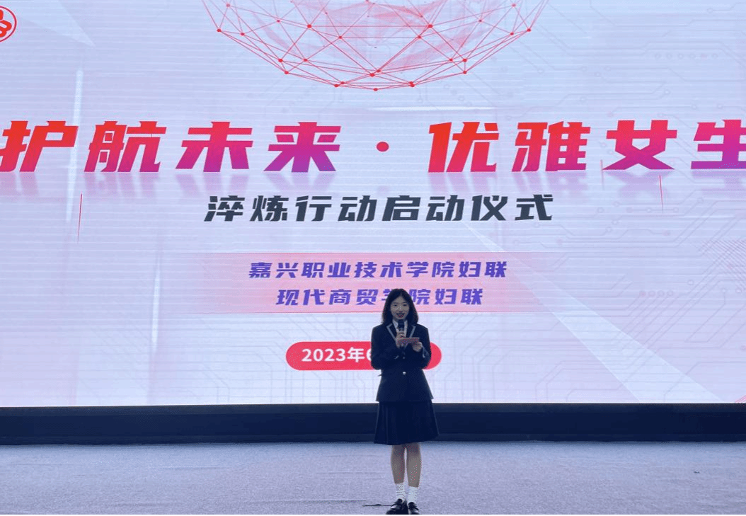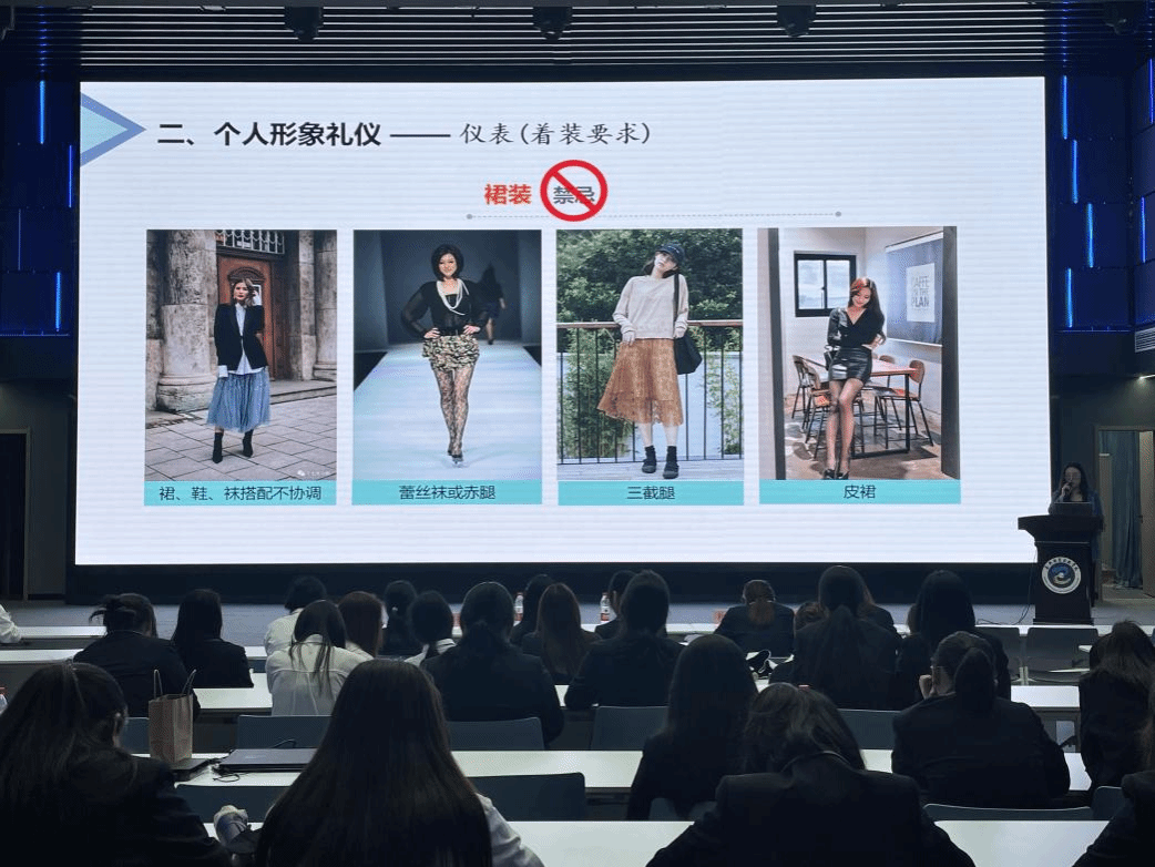 6月7日晚,現代商貿學院舉行“護航未來·優雅女生”淬煉行動啟動儀式暨商務禮儀講座?;顒友埩思闻d謙雅文化傳媒有限公司總經理杜鳳霞、同濟大學浙江學院心理健康教育與咨詢中心主任顧嘉佳、嘉興學院設計學院服裝藝術學博士劉穎、嘉興市公安局出入境管理局一級警長張晶、嘉興市海鯤甄選電子商務有限公司總經理周霞出席?,F代商貿學院女師生代表共80余人參加啟動儀式。