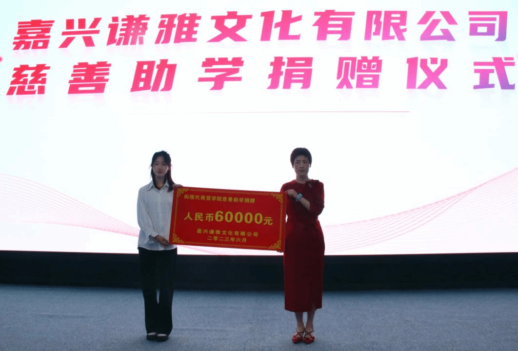 嘉興謙雅文化傳媒有限公司與現代商貿學院合作創辦“商貿創能學堂”,向學院捐贈慈善助學基金6萬元,設置獎學金獎勵優秀學生,實施素質教育與創新創業教育深度融合,挖掘學生的創新潛力,激發學生的創業熱情。
