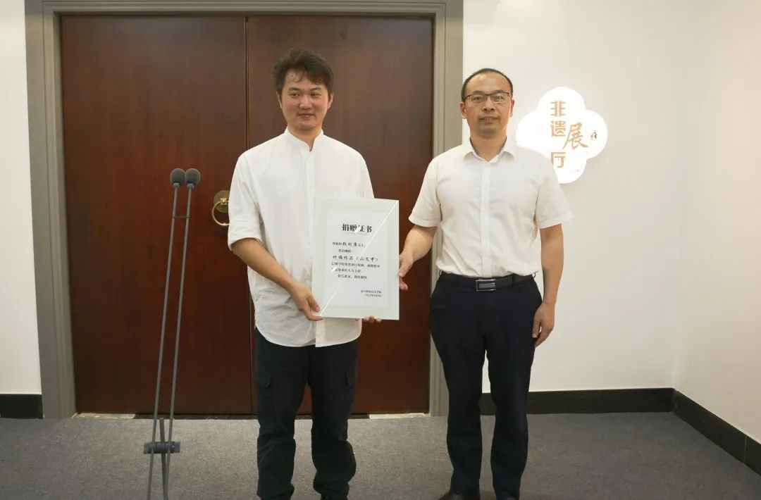 黨委委員、副院長(zhǎng)汪明華代表學(xué)校向錢利淮創(chuàng)設(shè)的竹蕓工坊頒發(fā)嘉興市非遺學(xué)院傳承和創(chuàng)新基地證書。