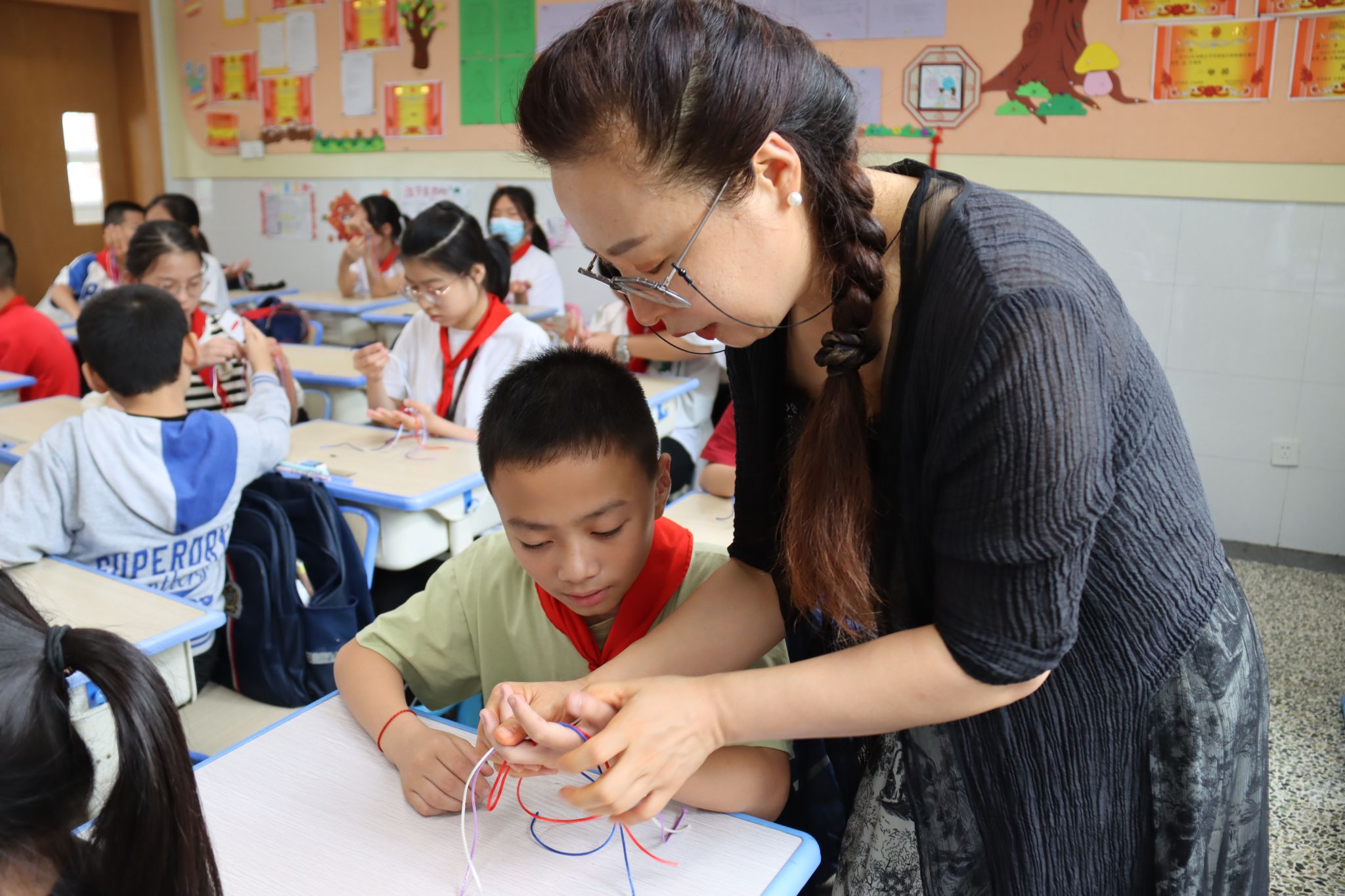 6月15日下午,嘉職院時尚設計學院師生赴嘉興市海鹽向陽小學開展“非遺編繩進校園”職業體驗系列活動,向陽小學五年級學生170余人參加本次活動。