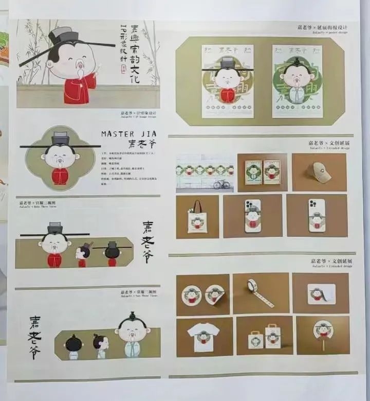 文創部分的展物由學校文化與旅游學院提供,文化創意與策劃專業師生團隊將別出心裁的文化創意、青春時尚的設計理念與嘉興宋韻文化元素等巧妙融合,形成一系列嘉禾宋韻文創作品。《子城IP形象設計—嘉老爺》《子城·相守相望》《蘿軒變古箋譜》《府宴·相見歡》等一系列生動形象、栩栩如生的文創作品吸引了無數目光,特別是憨態可掬的“嘉老爺”,頗受來賓的青睞。它以嘉興府的官員為原型,加以現代審美的改造而成,用藝術的手法探尋宋韻寶藏的可愛“打工人”形象。