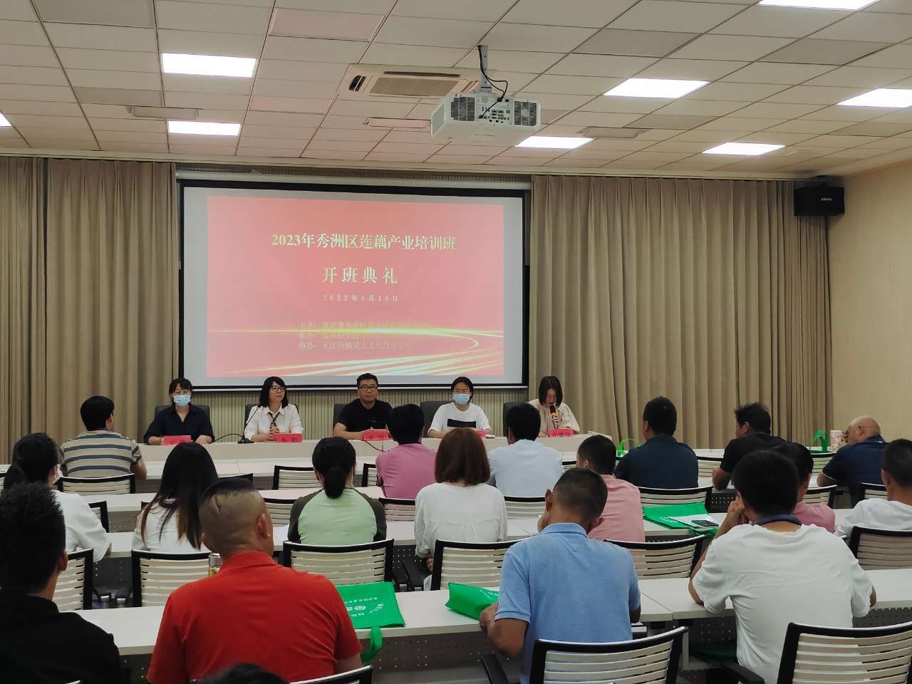 為有效提升秀洲區蓮藕質量、蓮藕產業產銷水平,更好推動秀洲區蓮藕產業發展,助力鄉村振興、農民富裕。6月16日,由嘉興市秀洲區農業農村和水利局主辦,嘉興職業技術學院時尚設計學院承辦,王江涇成人文化技術學校協辦的嘉興市秀洲區蓮藕產業培訓班在王江涇黨群服務中心召開。來自秀洲區的蓮藕產業合作社、家庭農場負責人以及種植、營銷大戶70余人參加培訓。