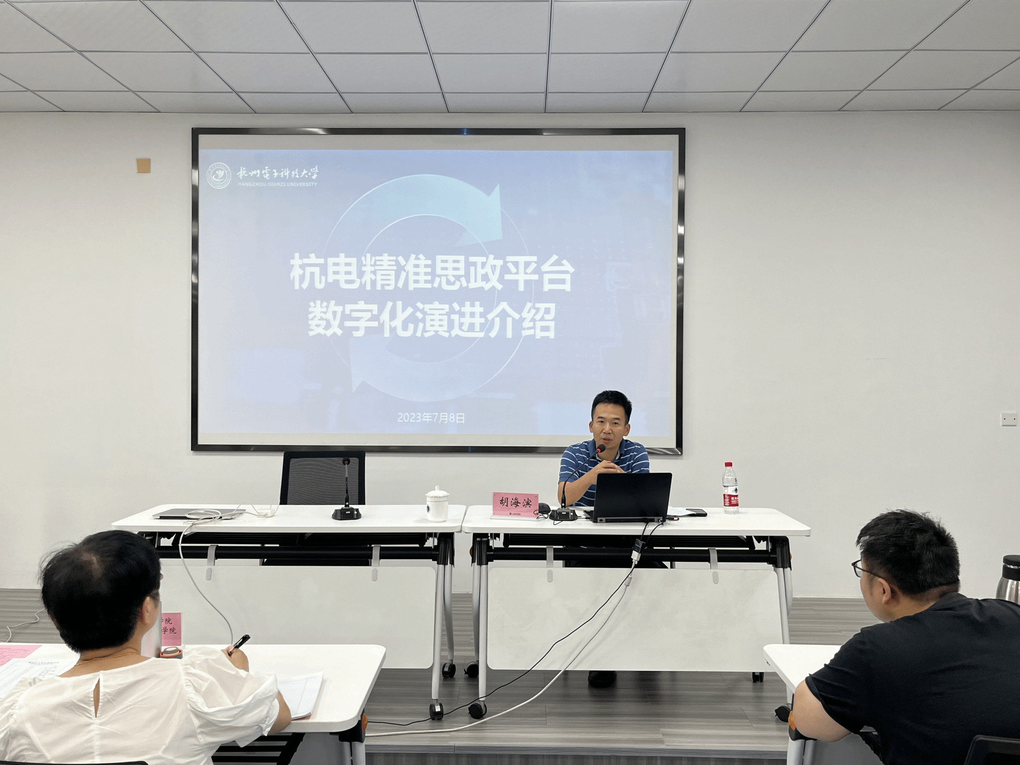 7月8日下午,第十一屆全國高校輔導員年度人物、杭州電子科技大學圣光機聯合學院黨委書記、浙江高校網絡思政中心副主任胡海濱以《杭電精準思政平臺數字化演進介紹》為題,重點從“上課啦”系統構建出發,介紹師生事務一網辦理、管理服務一網統籌、思想引領一網承擔的精準思政平臺搭建邏輯,希望輔導員同仁們提升信息素養,靶向精準服務,服務新時代青年成長成才。