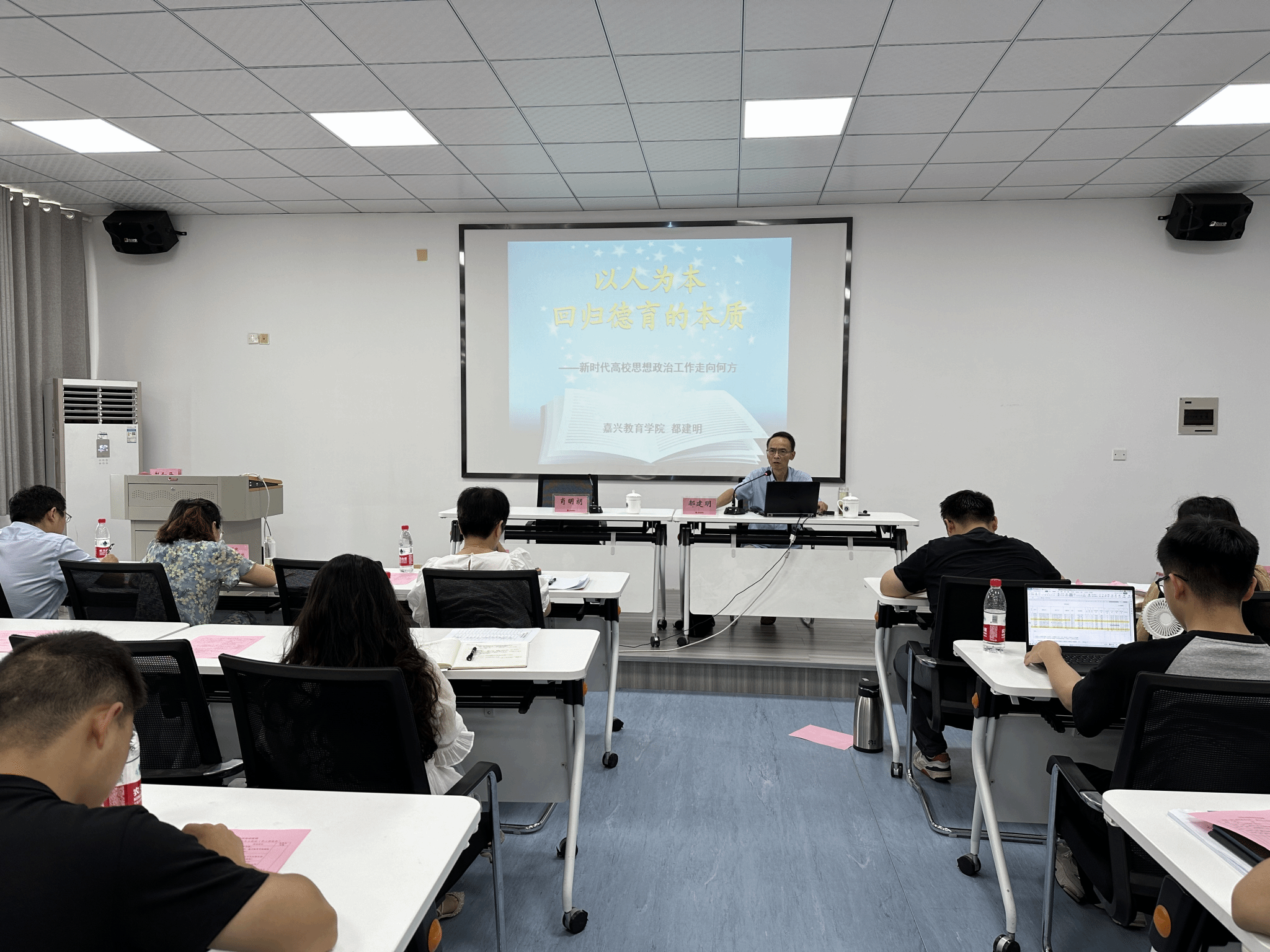 7月8日上午,嘉興教育學院副院長都建明以《以人為本 回歸德育的本質——新時代高校思想政治工作走向何方》為題,從德育的本質和價值兩個維度準確定義新時代德育豐富內涵,精準分析德育評價標準,提出未來德育教育“走向公民、走向生活、走向對話、走向多元”的發展趨向,倡導輔導員樹立現代德育理念,提高人才培養的站位目標,為實現中華民族偉大復興培養有用人才。