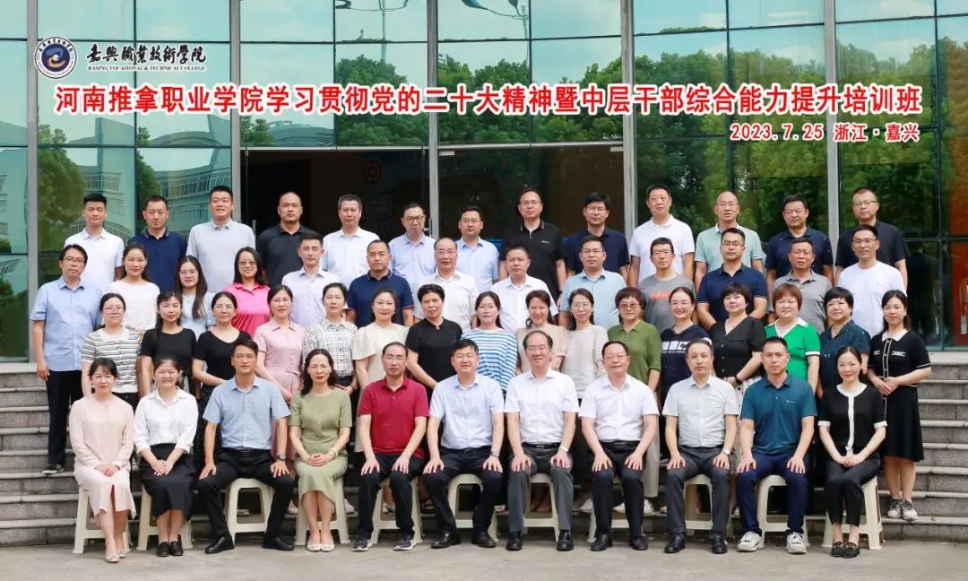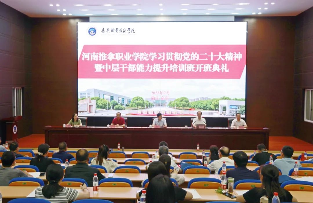 為深入學習貫徹黨的二十大精神,進一步提升中層干部能力素質,7月24日至30日,河南推拿職業學院學習貫徹黨的二十大精神暨中層干部能力提升培訓班在嘉職院舉辦。嘉職院黨委書記方俊良致辭并作專題報告,河南推拿職業學院黨委書記韋保新出席,河南推拿職業學院黨委副書記、院長彭新作開班動員。來自河南推拿職業學院的53位中層干部參加培訓。