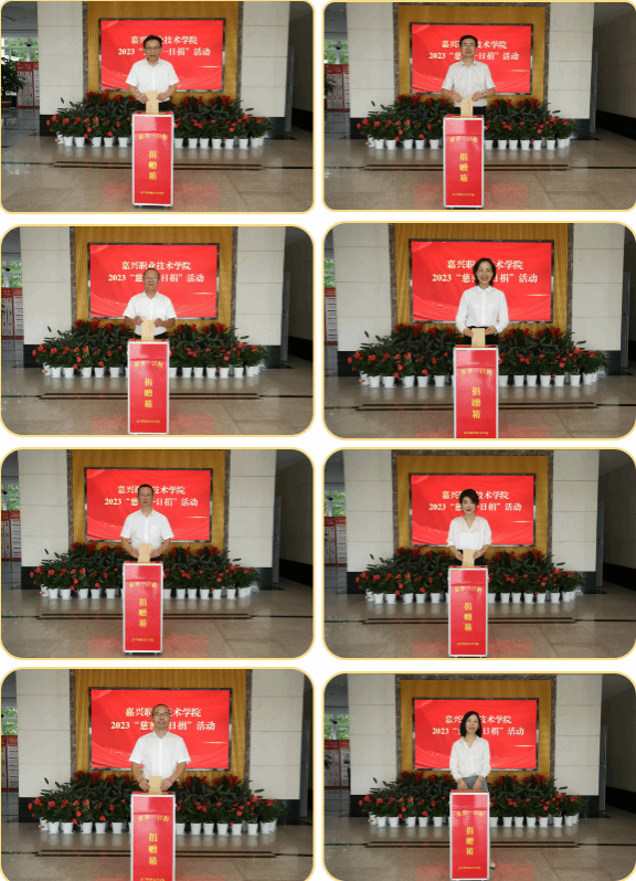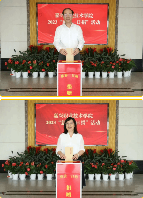近日,嘉職院組織開展2023年“慈善一日捐”活動,黨委書記方俊良、院長張紅等校領導帶頭捐款,學校干部教師積極響應,踴躍參與,以實際行動支持慈善事業、關愛弱勢群體,現場暖意融融、愛心涌動。