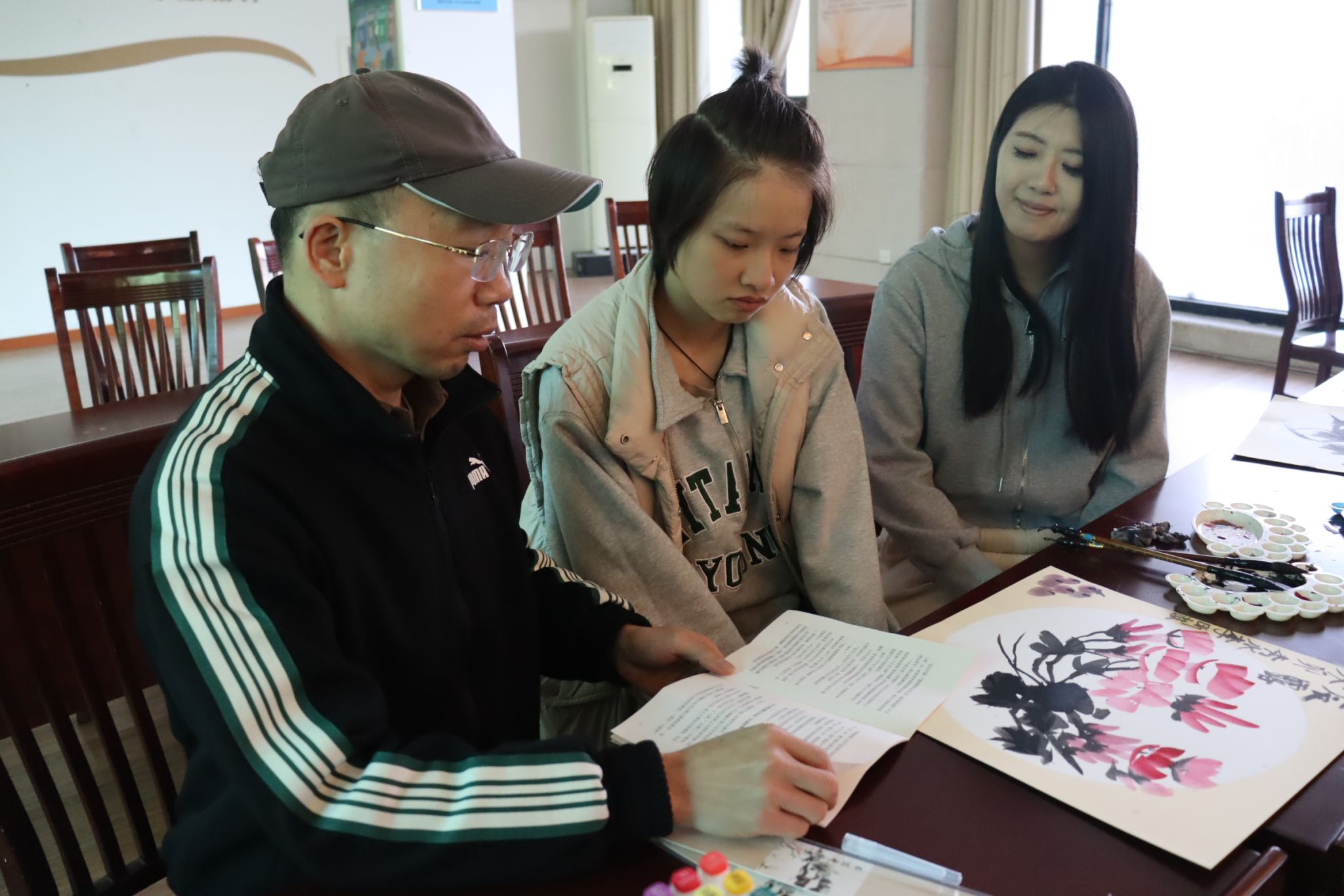 小朋友們在完成自己的手繪作品后,開心地舉著自己的作品合影留念,他們說:“嘉職院的老師太給力啦,他們細致耐心地教我們完成這么棒的繪畫,讓我第一次擁有了自己的國畫作品!希望老師們能常來指導我們學習國畫繪畫!”