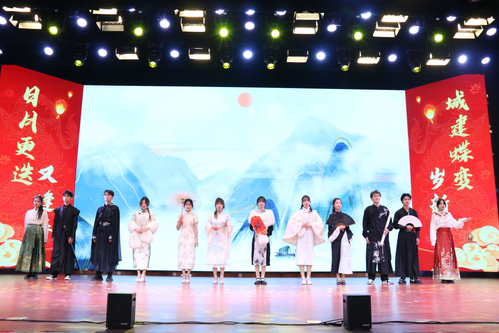 一襲旗袍詮釋歲月靜美,一襲青衣染就一樹芳華,兩袖月光訴說絕世風雅,城市建設學院團學帶來的《創意走秀》將晚會氣氛推向高潮,一場具有東方美學的T臺秀,帶給觀眾非凡體驗。最后,晚會在大合唱《相親相愛》中落下帷幕。