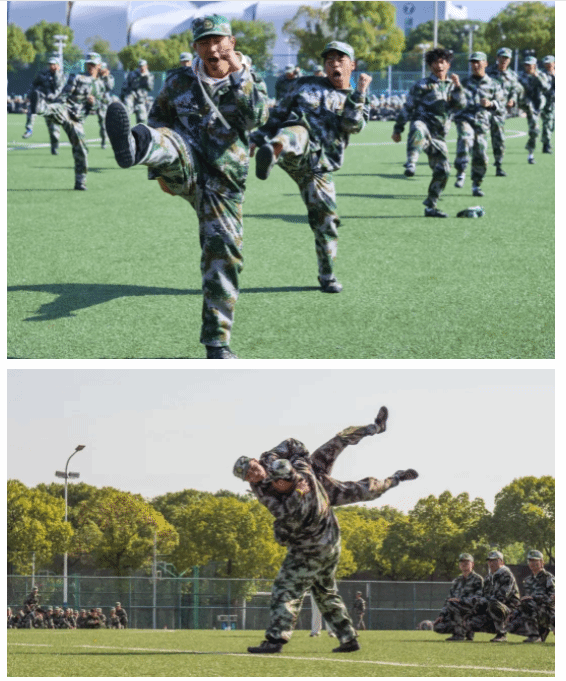 表演方陣氣勢磅礴、井然有序。擒敵拳打得虎虎生風、匕首操表演霸氣十足,現場不時響起如雷般掌聲。