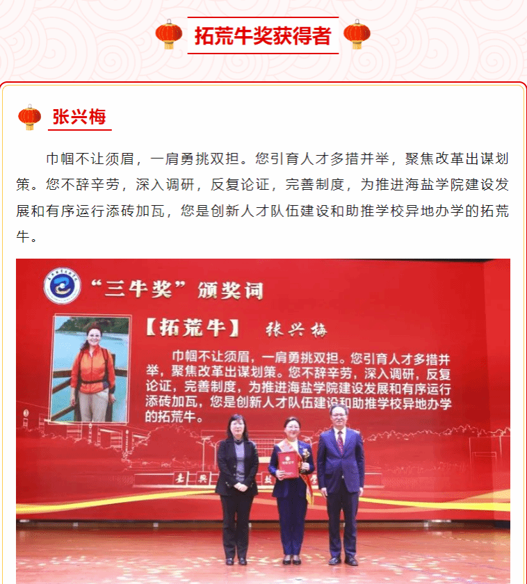 1月23日下午,嘉職院隆重舉行第四屆“三牛獎”頒獎儀式,表彰“為民服務孺子牛、創新發展拓荒牛、艱苦奮斗老黃?!钡摹叭*劇鲍@得者,他們充分發揚三牛精神,用持之以恒、堅忍不拔、堅持不懈的奮斗姿態,錨定目標、搶抓機遇、團結奮進、追夢奔跑,為學校擴容升級、高質量發展作出了突出貢獻。即日起,學校推出 “三牛獎”專題報道,向“三牛獎”獲得者表示崇高的敬意。
